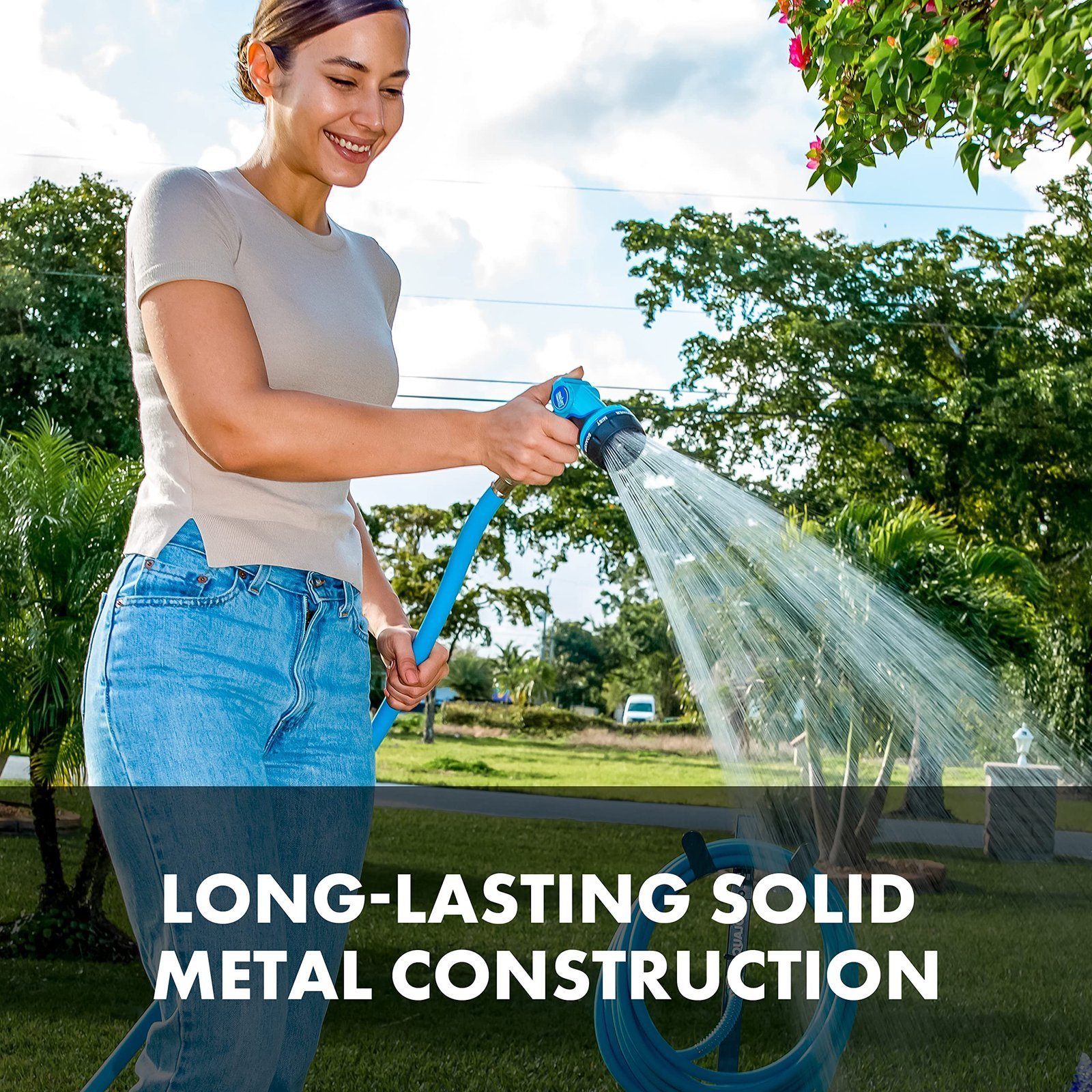 - [DURABLE]: Solid metal construction and rubberized grip nozzle lasts a lifetime