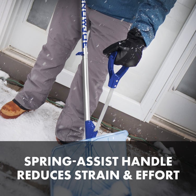 - SPRING-ASSIST: Spring-assist handle acts as a fulcrum – changes mechanics of shoveling, reduces strain