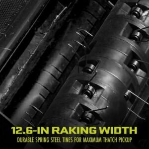 - AirBoost Technology: 27 spring steel tines for maximum thatch pickup