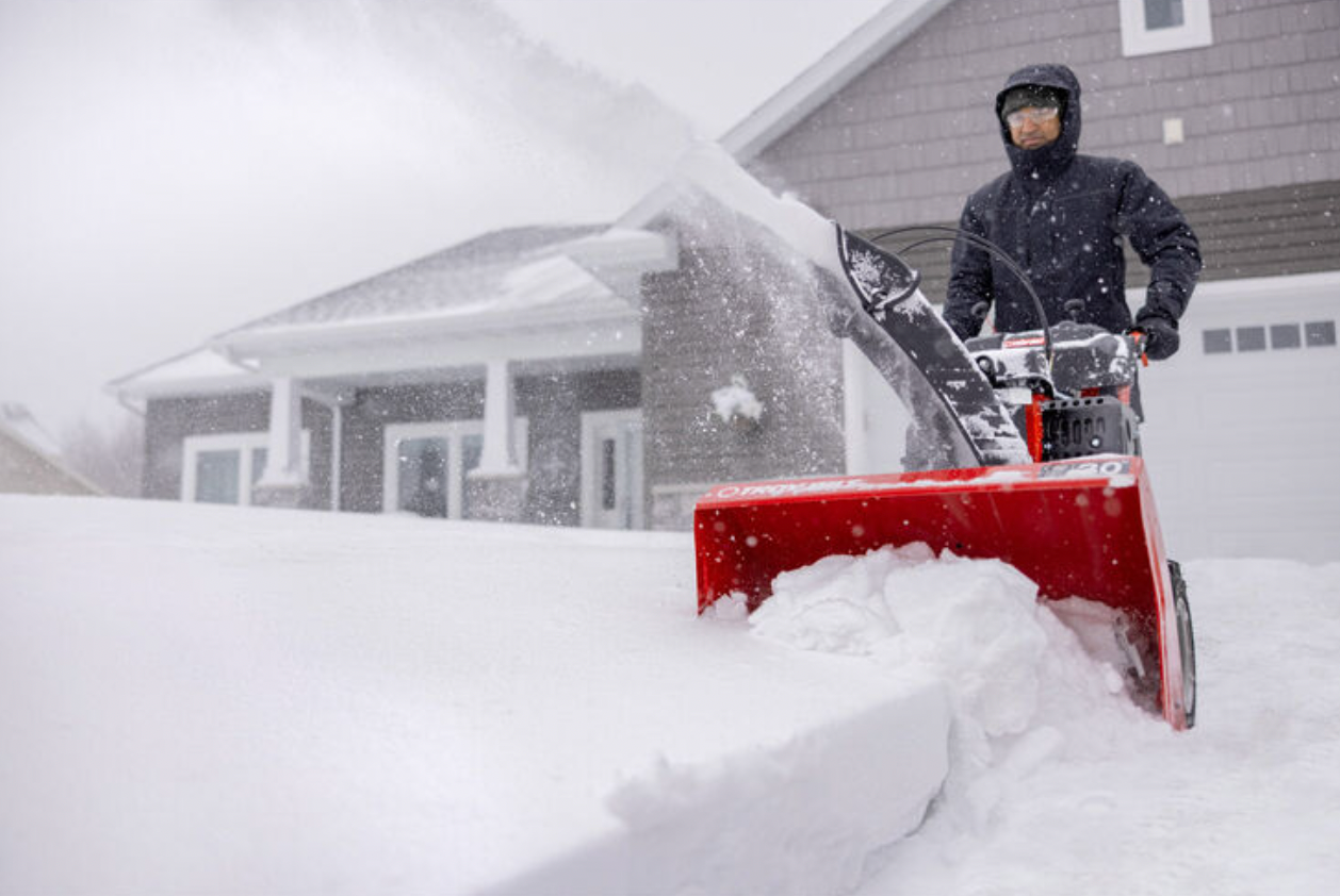 - 30 in. clearing width and a 20 in. intake height powers through up to 12″ of snow* and designed to throw up to 40′ of snow
